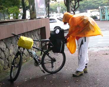 私たちは東へ進んだ。雨が降ってきた。カッパを着ての自転車乗りになった。