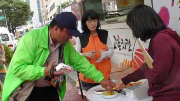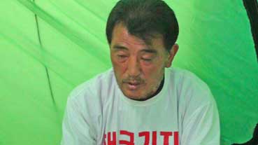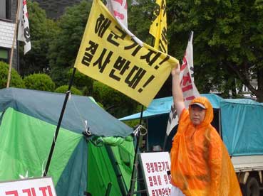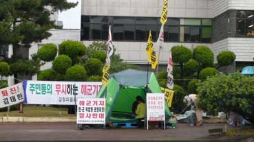 道庁前を通ると、断食をしている人にあった。「海軍基地反対」の人たちだ。