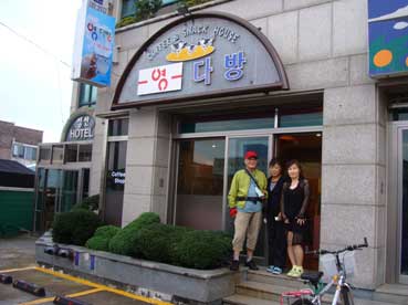 残った、朴正泰さんと私は自転車で進まねばならないのだが、雨が降っているので、城山で泊まることにした。
