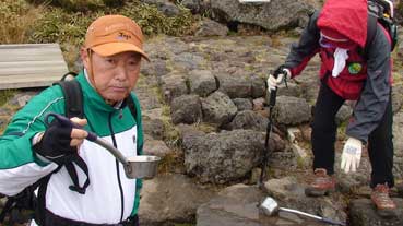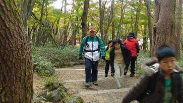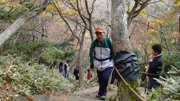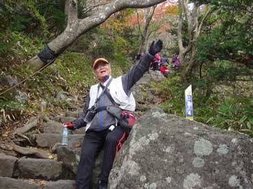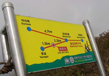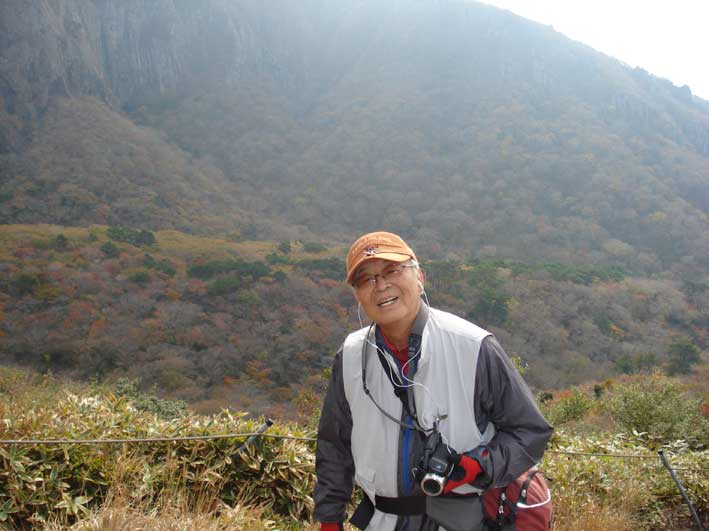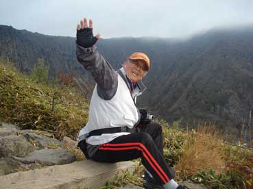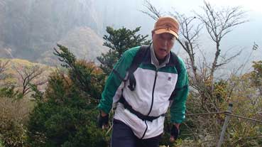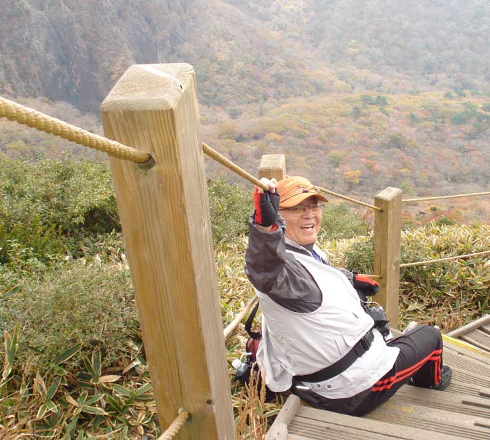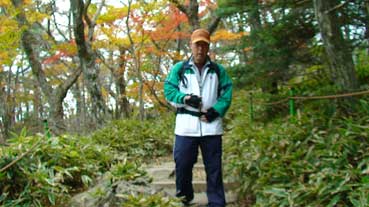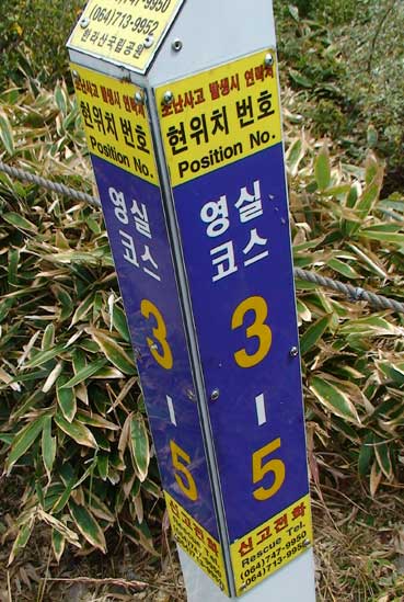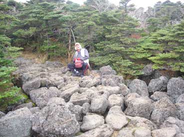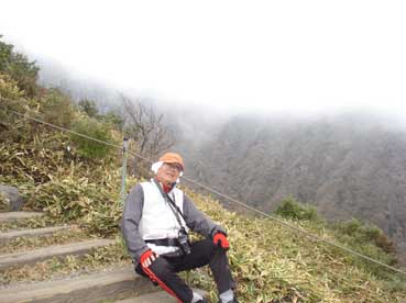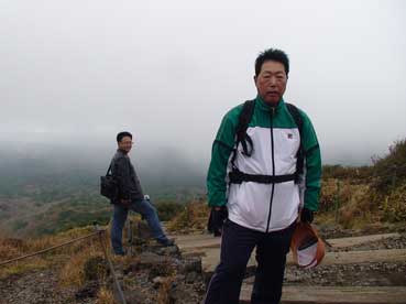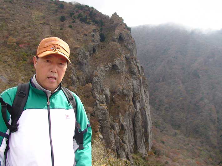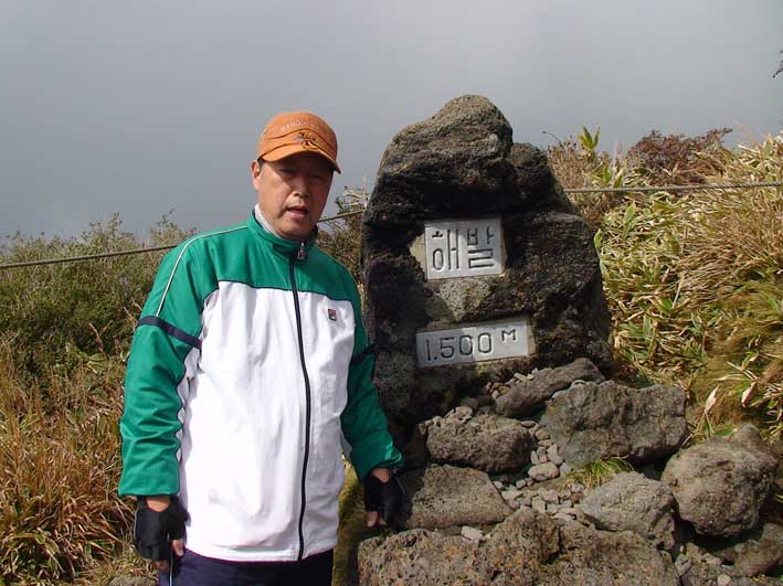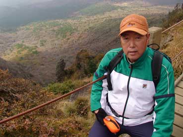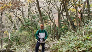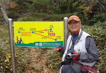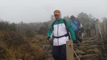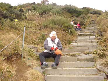| ヨンシル休憩所から登りはじめる。 許銀浩さんはここまでだ。降りるときに迎えに来る。 |