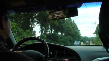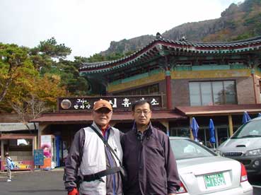 | この「イファジャン」で2泊した。 | 許さんが自動車で私たちをハルラ山へ案内した。 | |||||