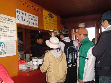 「ウッセオルム」の山小屋ではカップラーメンを売っていた。沢山の人たちが並んでいる。