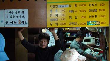 許さんが車で宿へ来た。キンパブと水を用意し、朝食にヘジャンク屋へ入った。