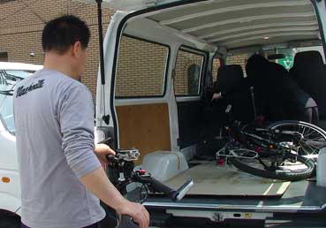 | 自転車に乗って税関を通り、外へ出る。