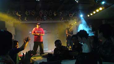 夕食後の食堂は宴会場に変身。のど自慢大会が始まる。