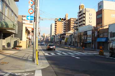 | 細工谷交差点。向こうの方に「TAC桃山」がある。 |