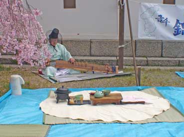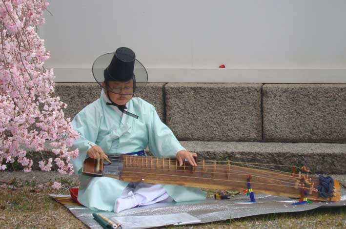 コムンゴ(玄琴)を弾く志村哲男さん。