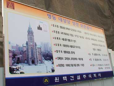 明洞聖堂前で