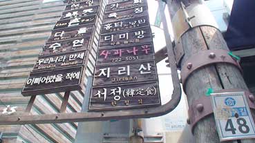 | 韓定食を食べた、食堂「チリサン」前で。 | |||||