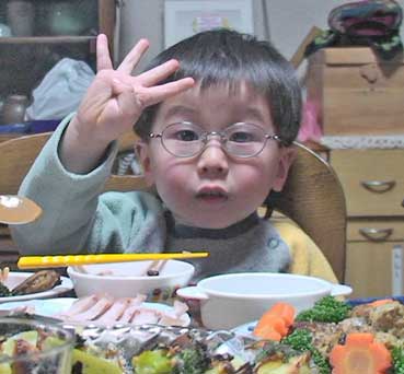 | 「いくつ?」「4つ」と答える敦史。 | ||||