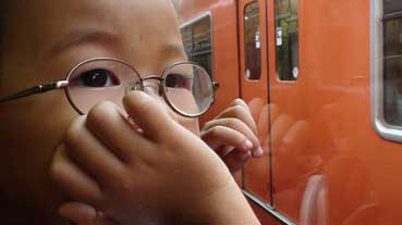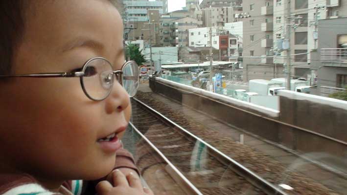 環状線の電車に乗って喜ぶ敦史