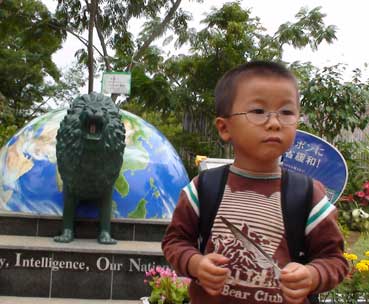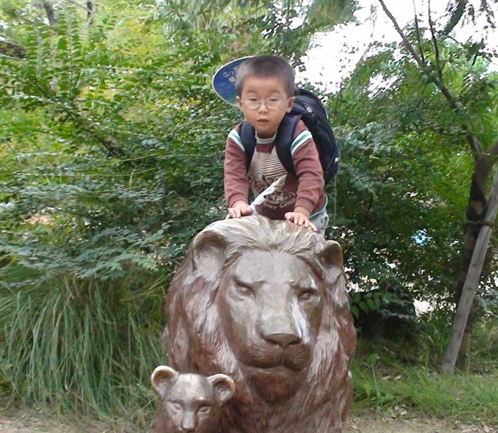 ライオンの像に登る、怖いかな?