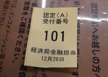 12月31日、緊急金融対策の認定申請を大阪産業創造館にある窓口で行い、認定書をもらった。