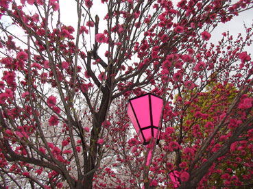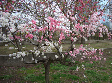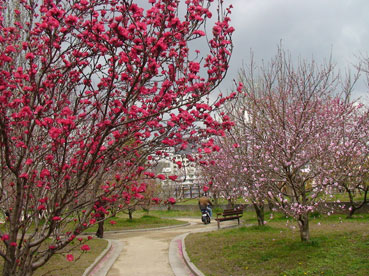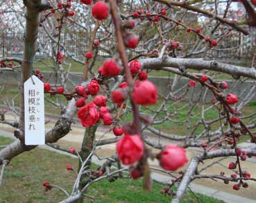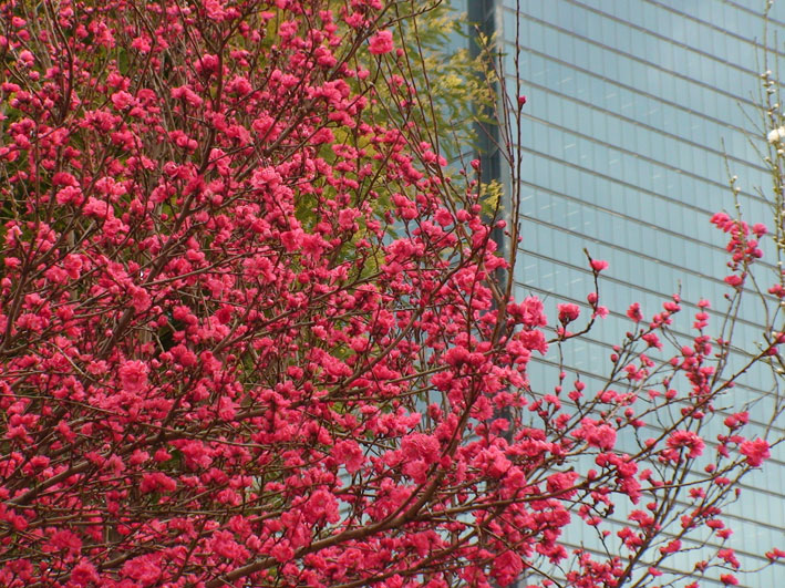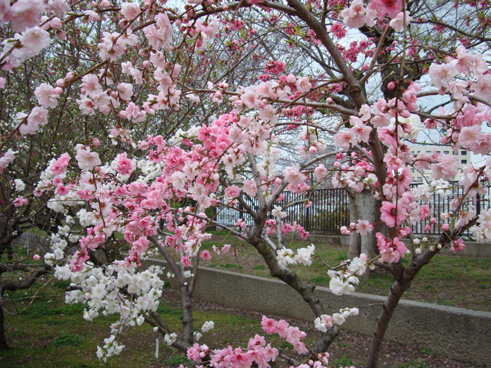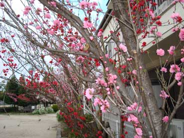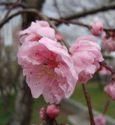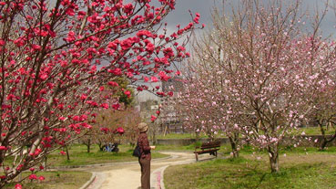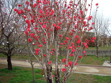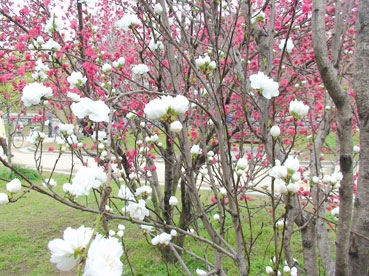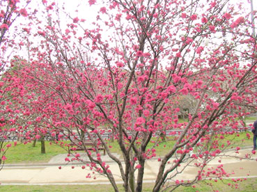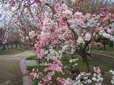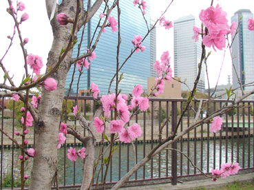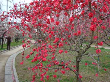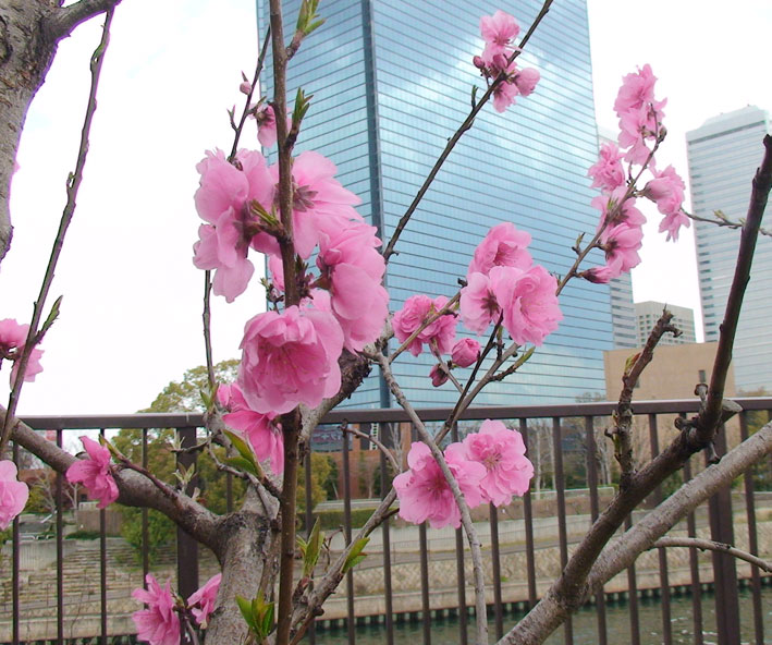 | 大阪城桃園は桃の花が満開のようだ。 | |||||