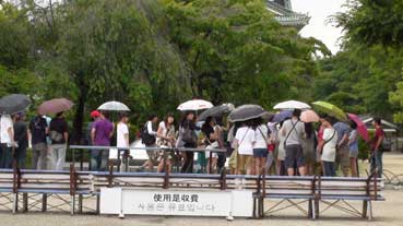2008年6月23日あさ、大阪城公園へ。今日の写真は小型ビデオカメラ、ソニーHDR-TG1で撮影した。天気予報では曇りのち晴れとあったが、雨が降ってきた。