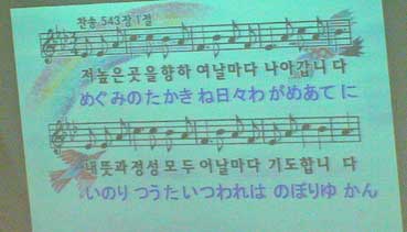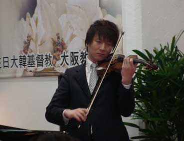 | バイオリン演奏 姜隆光さん | スクリーンに映し出される讃美歌 | ||||||||
