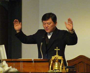 | 最後の祝祷をする朴寿吉牧師 | |||||||||