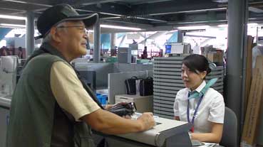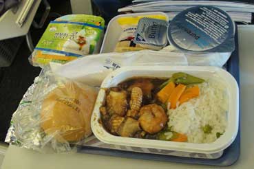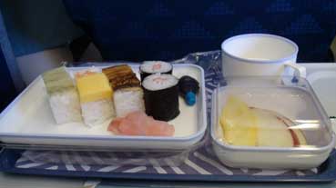 | 搭乗手続きをする。 | 機内食はすしだ。 | ||||||||