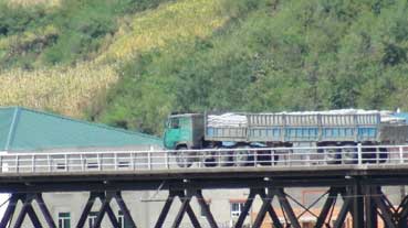 | 豆満江にかかっている橋にはトラックが。 | ||||||||||