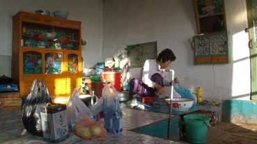 | お父さんは、かまどに火を入れた。釜でご飯やお汁がたかれる。それに、オンドルで部屋が暖かくなる。 | ||||||||||