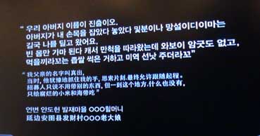 朝鮮族は、いつ頃から中国へ渡って来たか、なぜ来たか、などの記録が展示されていた。