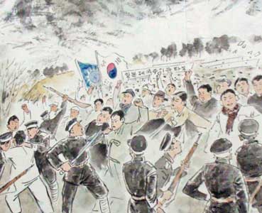 | 太極旗は描かれているが、北朝鮮の旗は描かれていない | |||||