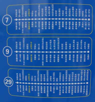 | バス停の行き先もハングル文字で書かれている。 | |||||