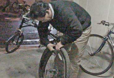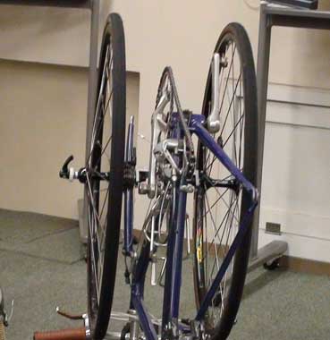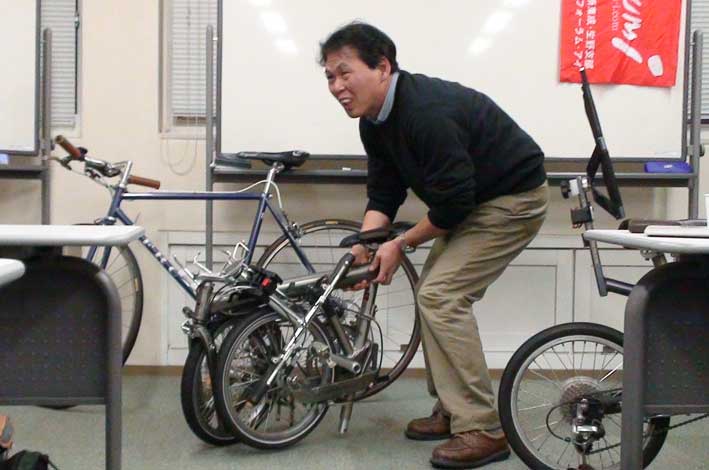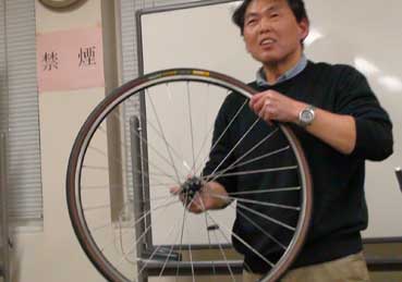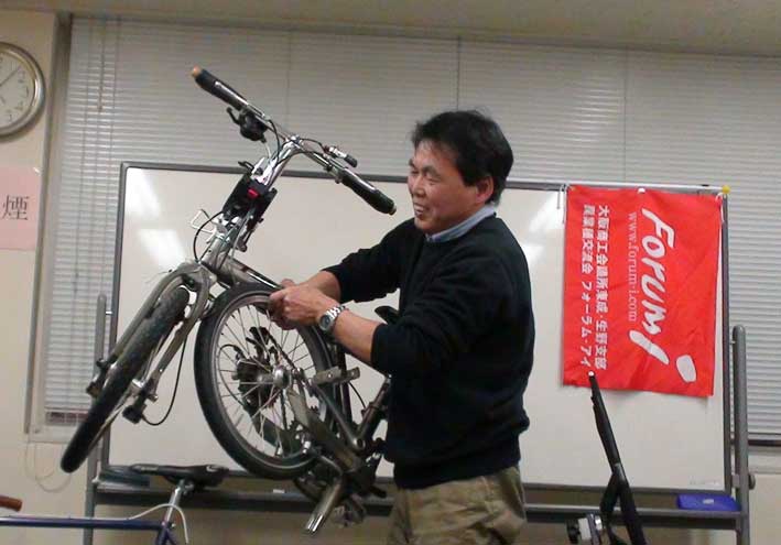 自転車を持込、実演を行う。
