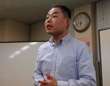 例会の進行役は玉利さんだ。