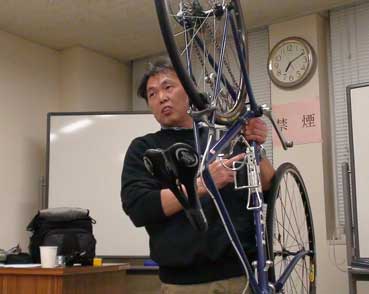 今回の例会は4月に行われる、春の自転車めぐりを前にして、より自転車を楽しむ為のセミナーを行った。