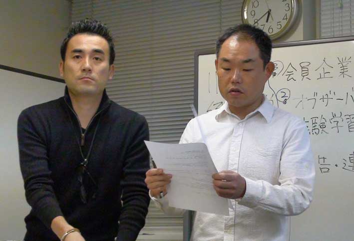 ■FI11月例会議事録 ○日時 2009年 11月 13日(金) PM6:30〜8:30 ▼例会幹事(今期より例会1年を通してまとめ役) 吉田 挨拶 ●報告事項 ●オブザーバー紹介 ●体験学習 “バスは待ってくれない” ★グループのメンバーが分散されて渡された情報を出し合い、組み合わせることによって、1枚の地図を作成する体験学習。 ●来月より例会の最初10分くらいを使って3名ずつ企業紹を、新しい会員さんから始めます。メールでお知らせしますのでよろしくお願いします。 ●来月12月例会担当は、山崎さんに決定です。 ※追加、訂正修正ありましたらご指摘よろしくお願いします! <増井研磨工業所 増井義仁> |