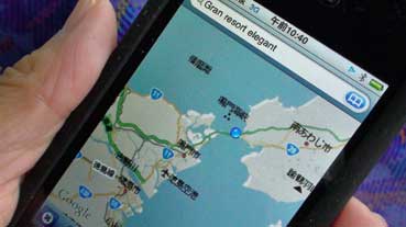 | iPhoneのGPSはいるところを地図に表示してくれる。 | ![]() |