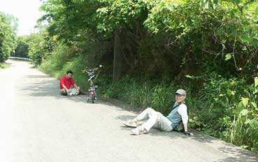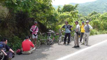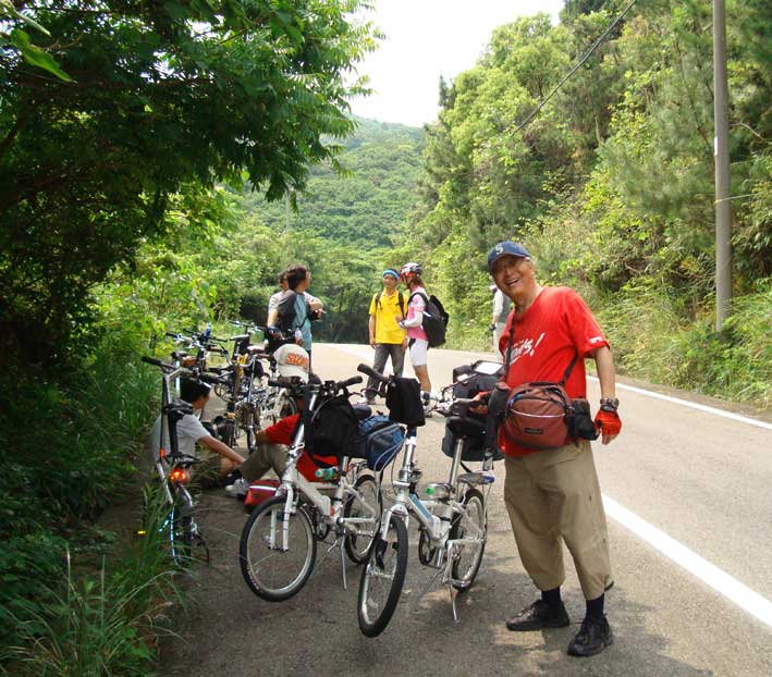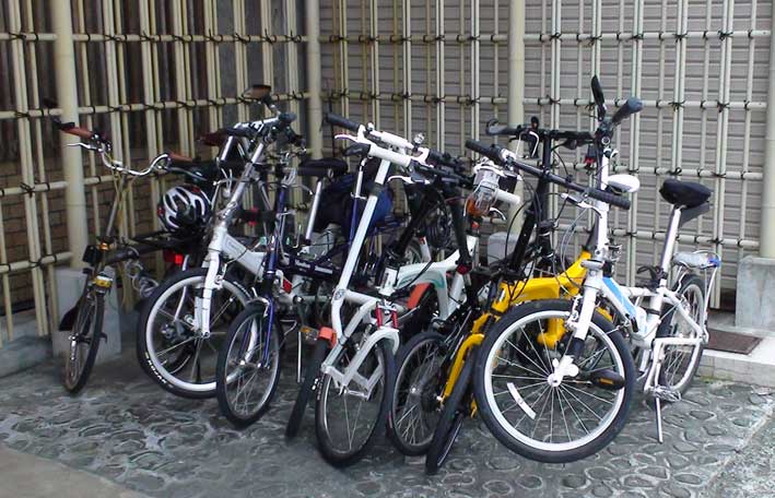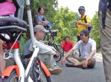 | 結構、アップダウンがある。一休み。 | 小径車が並ぶと、見ものだ。 | |||||||||