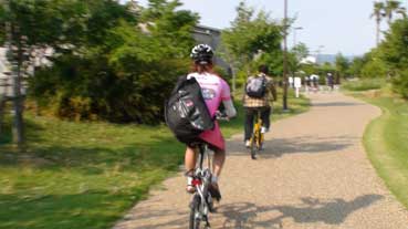 | 大きな公園、松江緑地を通る。 | |||||||||