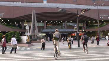 | 南海電車、和歌山市駅。 | 自転車を輪行袋に入れて、電車に乗る準備。 | |||||