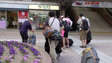 | みさき公園駅前で、楠さん、大谷さん、新井さん。 | ||||||||||