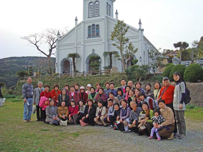 参加者全員、大江天主堂の前で