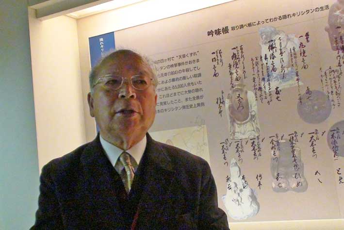 天草ロザリオ館、松本館長の説明を聞く