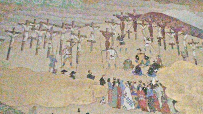 日本26聖人殉教記念館の壁に書かれた絵