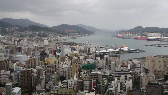 ホテルの部屋から見る長崎市
