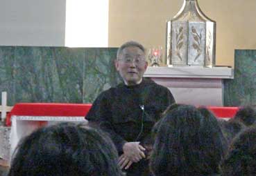 説明をする小崎神父。 | |||