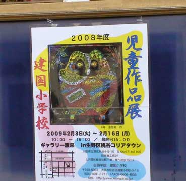 白頭学院建国小学校の作品展が行われている。場所は生野コリアタウン「ギャラリー渡来」で、