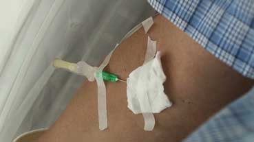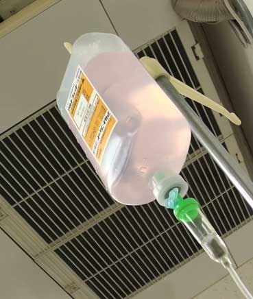 | 点滴の量は多く見える。ビール大ジョッキ2杯分はあるだろう。ビールなら胃袋に入るが、これは直接血管に入る。不思議だ。 | |||||