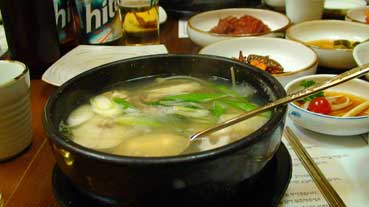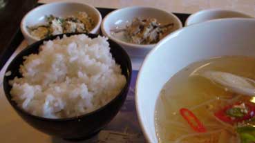 | パンスターフェリーでの朝、いい天気だ。 | 朝食にミョンテスープ定食。 | ||||||||