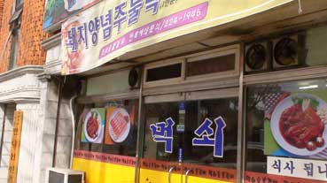 | 昼食は蔚山大学へ行く途中、サンギョップサルを。 | |||||