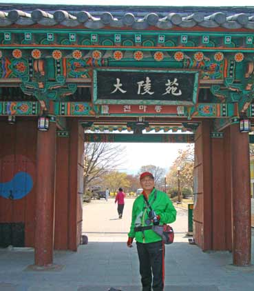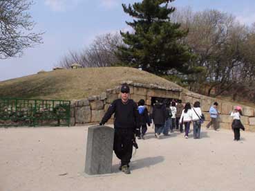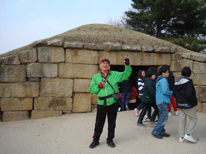 | 新羅お城跡にある冷蔵庫「石氷庫」の前で。 | |||||