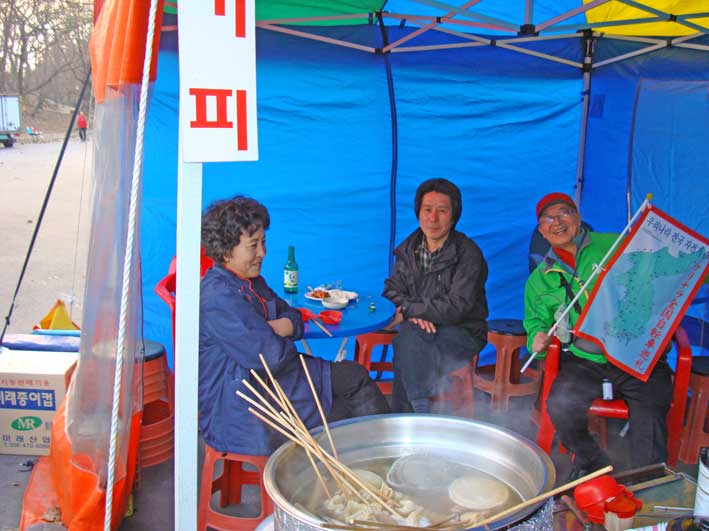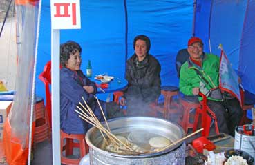アジュモニがやっているポジャンマチャ(屋台)に入った。おでんとビールを飲みながら、