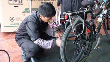 朴正泰さんの自転車がパンクしていた。そのとき、親切な人がいて、