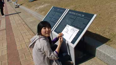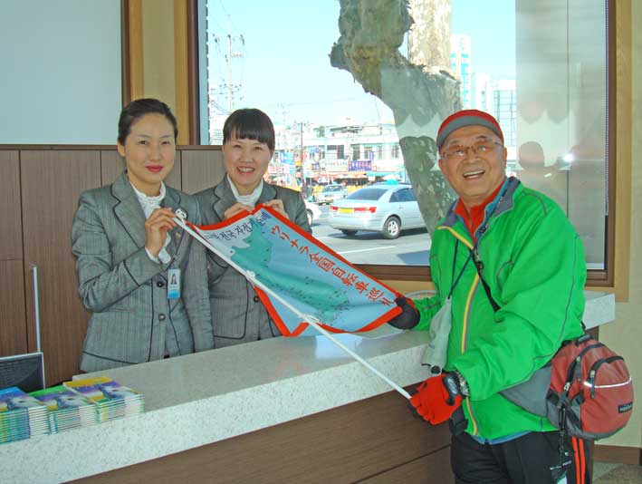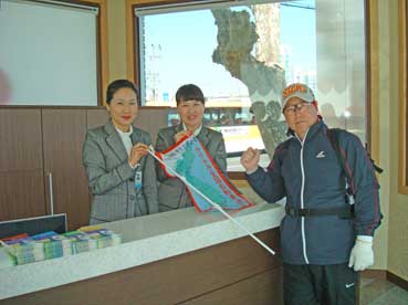 昨日の案内に感謝を言いに駅前の観光案内所に寄った。金スジンさんと韓ヘシュクさん。