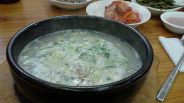その食堂は豚肉クッパの家だ。初めて食べる豚肉お汁の食事、こってりとして、それなりにおいしい。